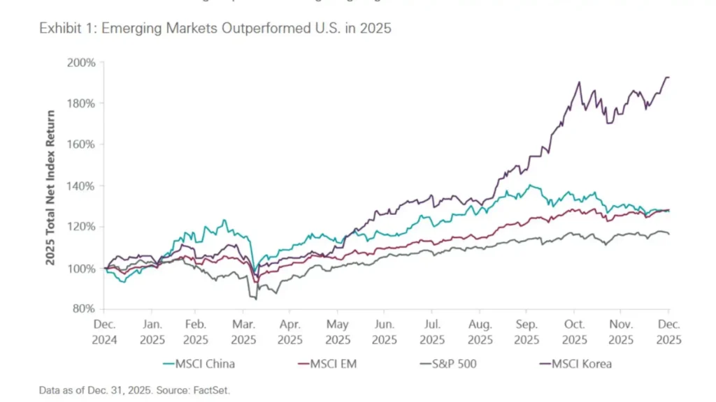 A Softer Dollar and Renewed Risk Appetite: A primary tailwind for emerging markets (EM) in 2026 is the weakening U.S. dollar. A softer dollar is a dual benefit: it enhances returns for foreign investors and reduces the cost of servicing debt held in local EM currencies. This shift has bolstered investor sentiment, leading to accelerated inflows into EM equities and fixed income.