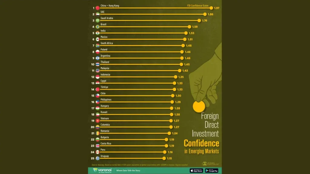 - Concentration Risk: A handful of markets—China, India, Brazil, and the Gulf—absorb the bulk of foreign investment, leaving smaller emerging economies at risk of capital scarcity.