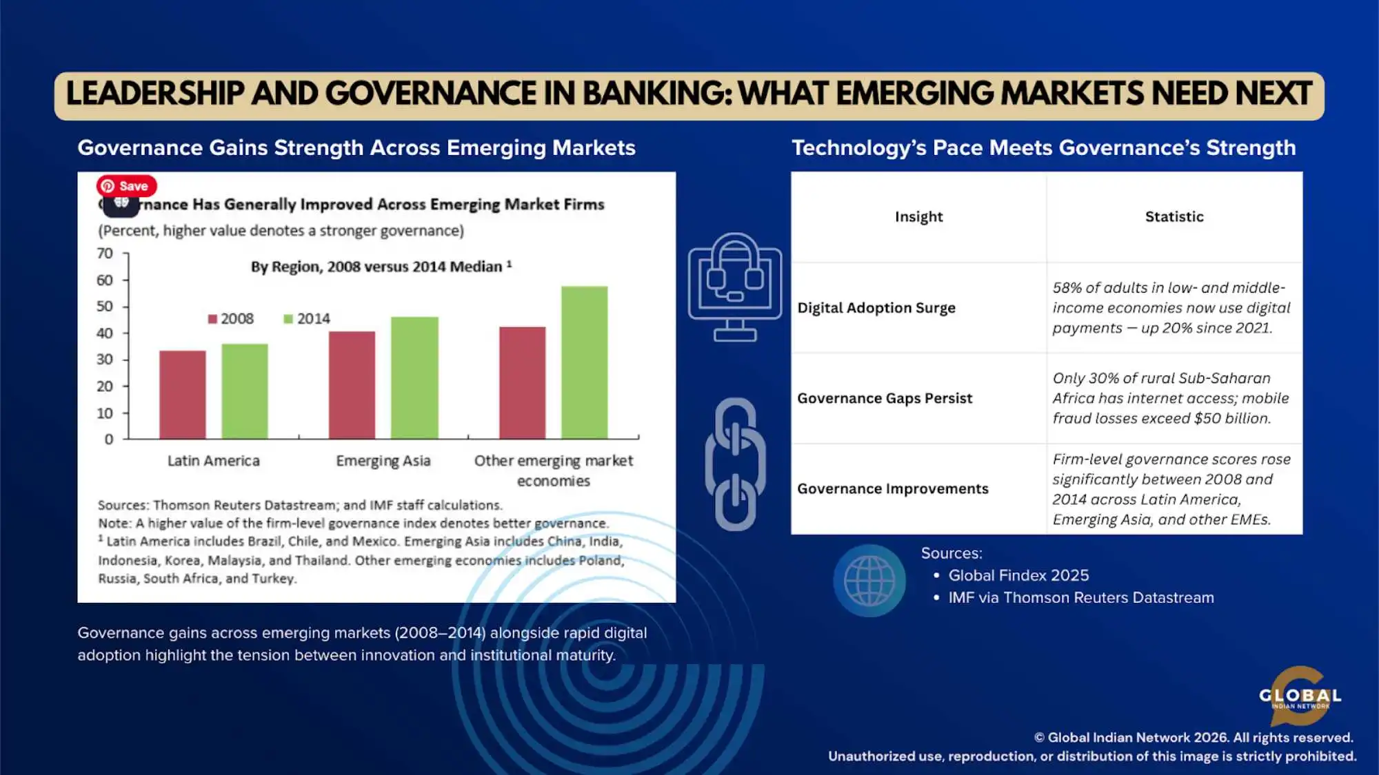 Emerging-market banking stands at a crossroads. Technology and capital inflows accelerate progress, but they cannot substitute for governance discipline and depth of leadership. The next decade will reward institutions that embed resilience before crisis forces reform, cultivate boards that are strategic rather than symbolic, and align growth with public trust.